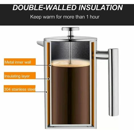 Double paroi d’isolationGrce notre construction en acier inoxydable double paroi et le couvercle intelligemment conu, la Cafetire piston peut garder votre caf chaud plus longtemps que les autres presses en verre. L’autre avantage est que la paroi extrieure