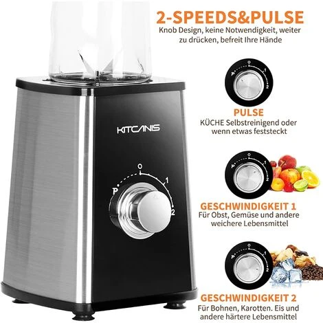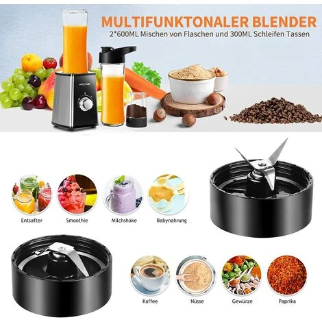 Le mixeur à smoothie est équipé de 600W + 2 vitesses réglables + fonction pulse, vous obtiendrez un verre de jus frais en 15 secondes et vous pourrez ajuster le goût que vous souhaitez selon vos besoins.
