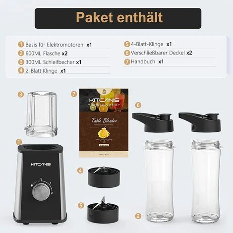 🍹【600W Haute Puissance】 Le mixeur KITCANIS a une puissance de 600W avec jusqu’à 35 000 tours par minute. La machine à smoothie peut être utilisée pour les fruits, les légumes, les noix, les grains de café et même les glaçons et tout autre aliment de votre choix. Vous n’êtes qu’à 15 secondes d’un verre de jus frais.