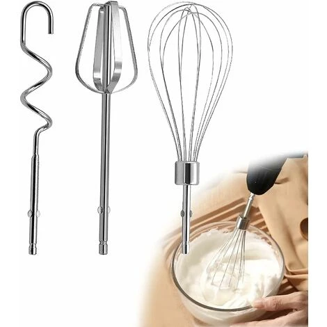 Ensemble de fouet à œufs Vous obtiendrez un ensemble de accessoires pour mixeur électrique en acier inoxydable de 3 pièces, comprenant 1 bâton de pétrissage, 1 bâton à 4 fils et 1 bâton à 12 fils. Vous pouvez facilement fouetter la crème et faire de délicieux gâteaux à la maison.