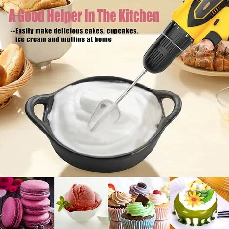 Facile à installerAvant utilisation, tournez lentement l’extrémité du fouet dans votre robot culinaire, serrez pour vous assurer qu’il ne tombe pas, puis allumez l’interrupteur de la perceuse pour obtenir rapidement un bol de crème fouettée. Compatible avec la plupart des batteurs à œufs sur le marché, notre pilon est la tête de remplacement idéale pour le fouet.