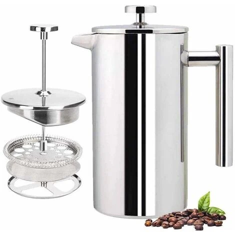 La presse française est dotée d’un filtre à mailles ultra-fines qui filtre parfaitement le marc de café et les thés pour réduire les acides et éliminer le goût d’un filtre en papier. La qualité alimentaire de notre marmite en acier inoxydable French Press assure également un goût frais et non métallique. Un tamis filtrant supplémentaire est fourni avec votre cafetière.