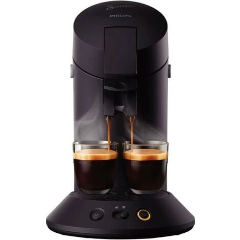 Son design emblématique offre un délicieux café à la simple pression d’un bouton pour 1 ou 2 tasses en moins d’une minute. Fonctionnement simple et rapide. Arrêt manuel de la préparation. Arrêt automatique au bout de 30 minutes pour économiser de l’énergie. Une couche de crème délicieuse, signature de la qualité SENSEO®. Un large choix de cafés et boissons gourmandes, adaptés à tous les goûts . Caractéristiques techniques : Puissance: 1 450 W, Tension : 220 – 240 V, Fréquence : 50 – 60 Hz. Longueur du cordon : 80 cm. Capacité du réservoir d’eau : 0,70 Litres. Hauteur du bec verseur : 10 cm. Coloris noir.