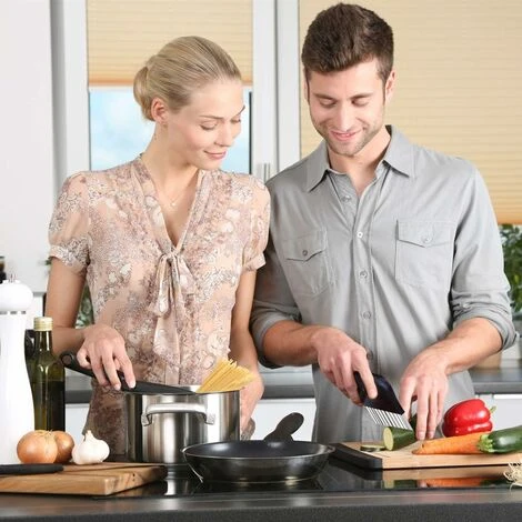 2. La lame tranchante avec la poignée antiglisse peut couper les aliments en forme d’onde. La lame est fabriquée d’acier inoxydable 430 qu’est résistant à la rouille et durable. La poignée est fabriquée de matériaux de PP antiglisse. Ce sont les matériaux de qualité alimentaire.