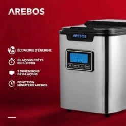 AREBOS Machine à Glaçons En Acier Inoxydable 2,2L LCD Icemaker 12KG/24H