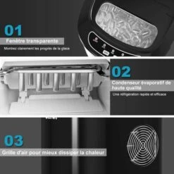 AREBOS Machine à Glaçons Cuillère à Glaçons Et Panier 2,2L Icemaker Machine à Glace 12KG En 24h