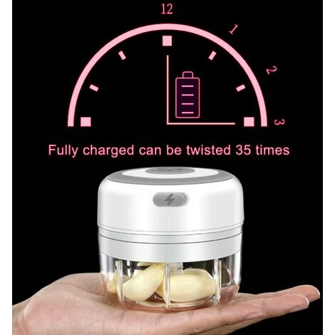 charge par USB. - Excellent matériau : ce mini presse-ail électrique adopte un matériau sans BPA, sans danger. Le mini hachoir à ail/oignon est conçu avec un verrou magnétique de sécurité pour les enfants, ce qui garantit que le hachoir à ail ne démarre pas sans fermer
