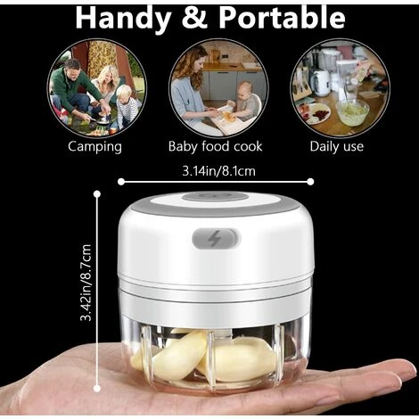 - Hachoir alimentaire portable rechargeable par USB : le mini hachoir électrique léger de 100 ml est parfait pour les petits travaux, tels que hacher l’ail, le gingembre, les poivrons, les carottes, les légumes, les oignons, les noix et plus encore,