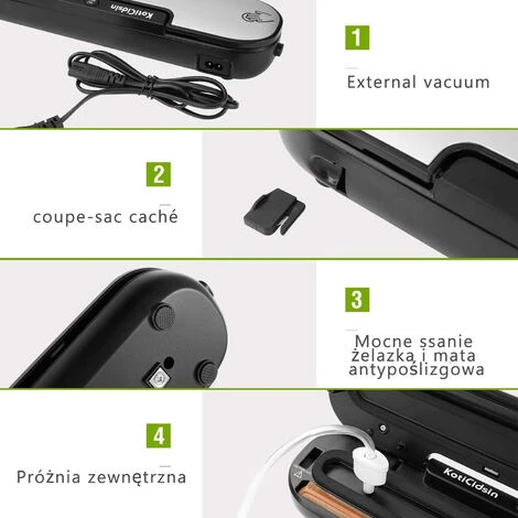 | Cordon d’alimentation amovible Petite taille, facile à utiliser, ne prend pas plus de place, peut être facilement stockée | Fournie avec un petit outil Fourni avec un petit cutter, vous pouvez couper à tout moment et n’importe où, vous avez besoin de sacs sous vide de différentes tailles |