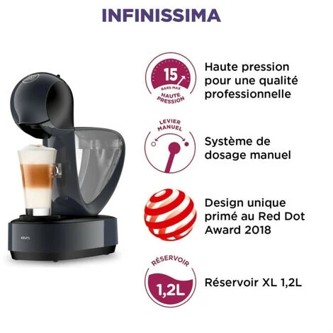 KRUPS Nescafé Dolce Gusto Infinissima YY5056FD Noir + 6 Boites De Café Bio, Offre Antigaspillage