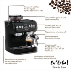 Cafetière Machine à Café à Grains Automatique Expresso Broyeur PILCA Compact Multifonction