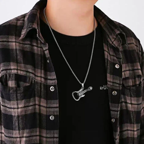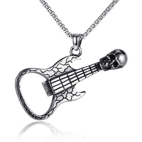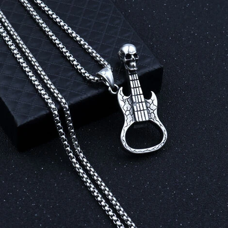 2. Collier avec pendentif en alliage d’acier au titane pour homme, tête de mort rétro, ouvre-guitare