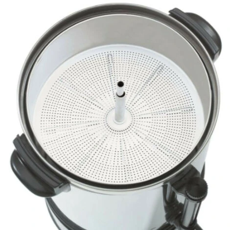 Idéal pour les professionnels de la restauration, ce Percolateur à Café Regina Plus 90 dispose d’une capacité de 15 L. Il permet de remplir entre 80 et 90 tasses en moyenne. Fabriquée en acier inoxydable et en plastique, il est doté de la fonction maintien au chaud.