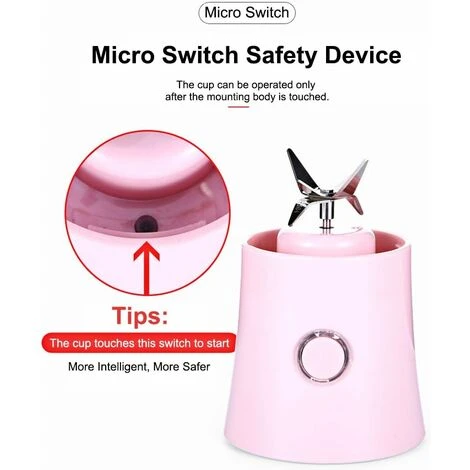 PUISSANT ET FACILE A UTILISER : Avec 7,4 V Double Motor + 4 lames tranchantes en acier inoxydable, il ne faut que 10-20s pour vous de faire un verre de jus, milkshake, smoothie, etc. Le renflement spoiler à l’intérieur de la bouteille renforce la convection et la collision des fruits, offrant ainsi une saveur plus douce et plus riche. Il ne laissera pas des résidus de fruits et pas bruyant comme les traditionnels.