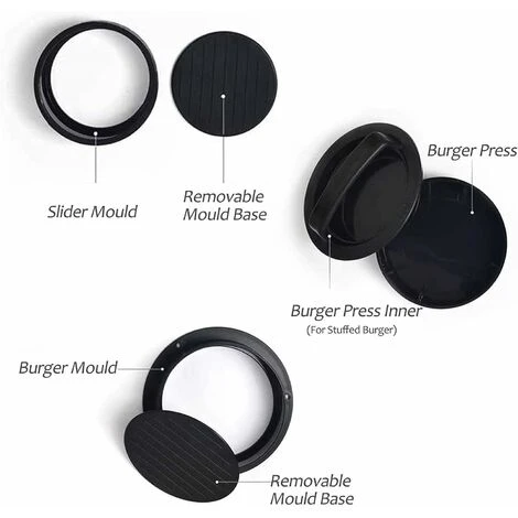 Matériau : ABS Couleur : noir Taille : 6 x 12,5 cm Emballage inclus : 1 * presse-viande facile à utiliser : seulement 3 étapes, chargez d’abord la viande, puis appuyez sur le remplissage, et enfin le capuchon. Cette presse à hamburger antiadhésive est équipée d’une base inférieure amovible facile à retirer. Fonction : la presse à hamburger est la tendance. Les assistants de cuisine professionnels combinent trois fonctions différentes en une seule. Vous pouvez penser à des mini burgers, des burgers classiques ou même des burgers complets.Burger King : Avec la presse à burger, vous pouvez fa?onner la viande et choisir parmi 3 variantes différentes. C’est ainsi que vous fa?onnerez sans effort le burger le plus savoureux dans la forme parfaite ! Les petites rainures sur la plaque inférieure de la presse à hamburger garantissent un temps de cuisson court et une belle apparence. Le point culminant de chaque fête! Plus rapide et plus facile : soyez créatif et essayez de nombreuses garnitures délicieuses pour hamburgers. Que diriez-vous d’oignons caramélisés, de bacon, de champignons, de tomates séchées ou de votre fromage préféré?? Que vous souhaitiez faire de petits gateaux avec des mini sliders ou de gros burgers fourrés, ce burger maker peut être réalisé à l’aide d’un design créatif et de divers accessoires ! FACILE à NETTOYER ET FACILE à RANGER?: non seulement la presse à hamburger peut être nettoyée au lave-vaisselle, mais sa taille et sa forme pratiques la rendent facile à ranger.