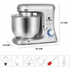Robot Culinaire 1400W Machine à Pétrir Machine à Pâte Avec Bol En Acier Inoxydable 7L-Argent