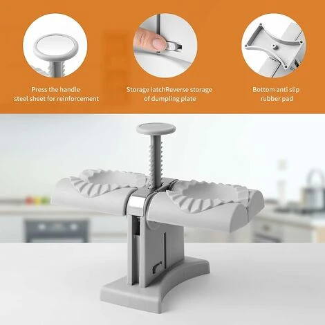 ①Forme de boulette automatique à double tête – ouvrir le dispositif de déverrouillage. ②Dumpling former Placez la peau de boulette et ajoutez la farce de boulette. ③formeur de raviolis Appuyez sur. Vous pouvez cuire à la vapeur/bouillir/cuire/frire pour faire de délicieuses boulettes. Peau de boulette : 6,5 cm à 8,5 cm.