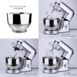 Robot Pâtissier KR210 – Mixeur – Mélangeur – Crochet – Fouet – 1000W