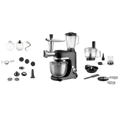 -éclaboussure, hachoir a viande, fonction blender 1,5L , crochet et batteur en alu , fouet inox, 3 disques a pasta , kit robot hachoir/râpe