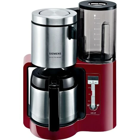 Données techniques : Couleur : rouge, argent · Dimensions produit, hauteur : 355 mm · Dimensions produit, largeur : 260 mm · Fonction de maintien de la chaleur (oui/non) : oui · Longueur : 250 mm · Minuterie : oui · Nombre de tasse : 12 · Poids : 3.9 kg · Puissance : 1100 W · Spécificités de la machine à café : minuteur, fonction de conservation de la chaleur, verseuse thermofuge · Verseuse isotherme (oui/non) : oui
